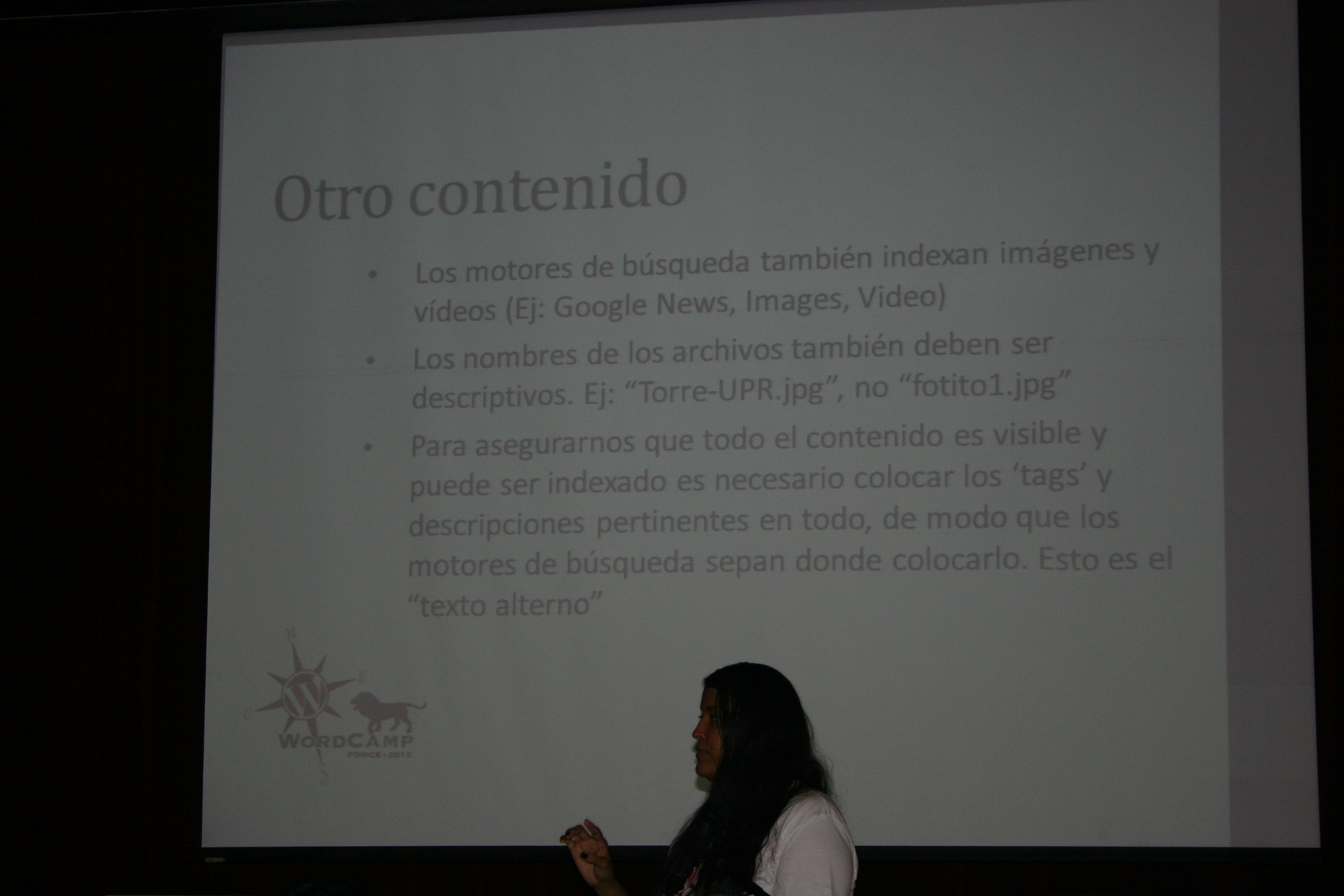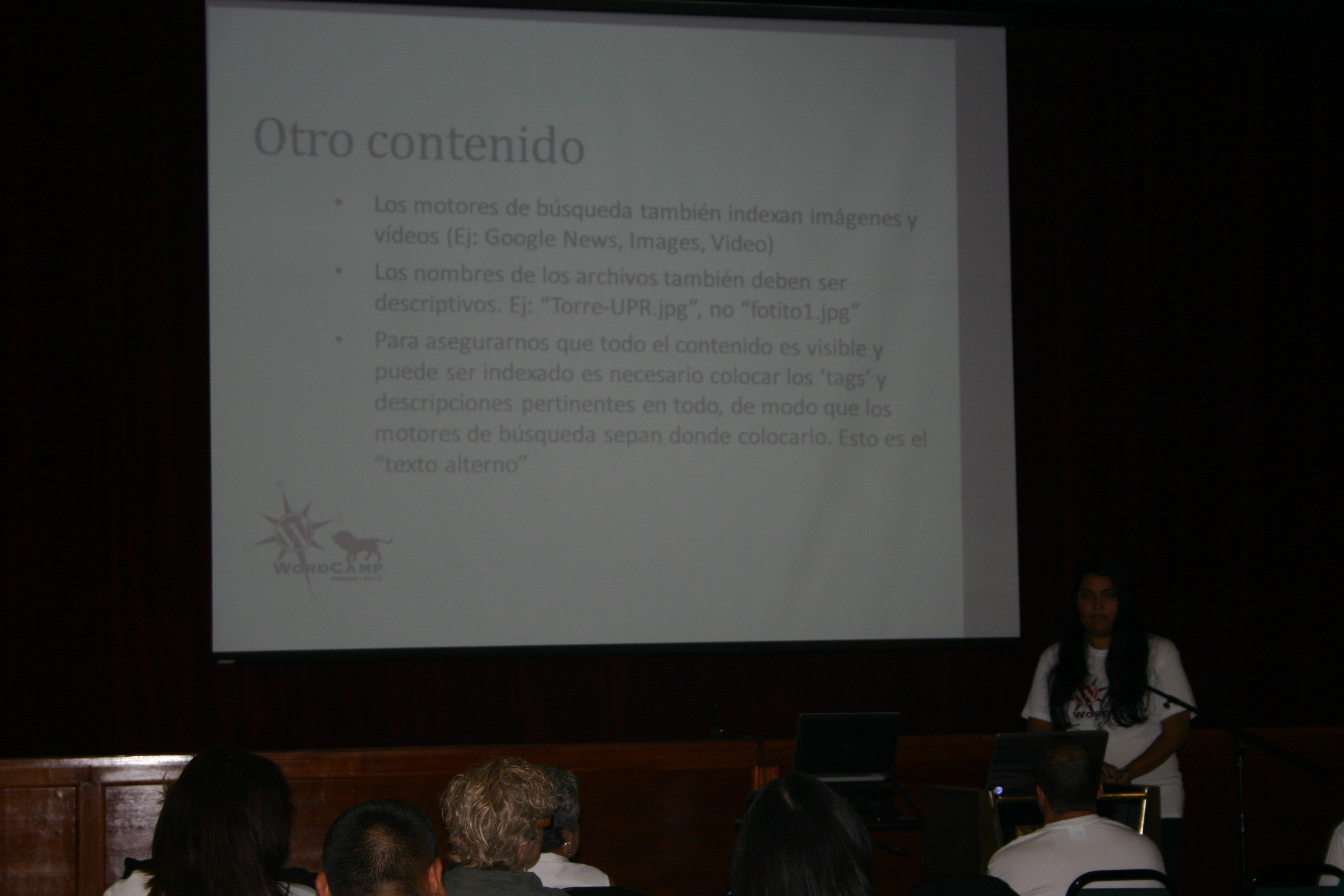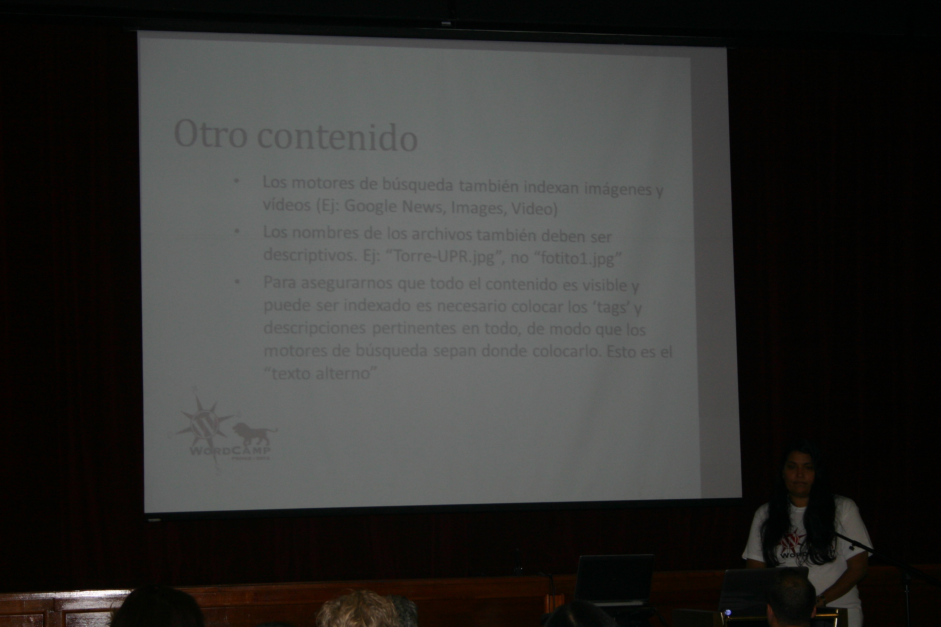 Una oportunidad única para escuchar al Dr. Mario Núñez Molina sobre WordPress y Educación. Conocer sobre las aplicaciones de WordPress, Layouts, Redes Sociales con Buddy Press por James Lynn y Ricardo Alcocer. Identificar conceptos sobre SEO (Search Engine Optimization), que quiere decir “la optimización en motores de búsqueda”, trata de optimizar tus páginas web de tal manera que están arriba en los resultados de búsqueda de los buscadores. Cada buscador tiene sus reglas y fórmulas (secretas) que deciden el posicionamiento natural de las páginas web. (link) por Charo Henríquez Editora de Multimedios de El Nuevo Día y Social Media Strategist con más de 11 años de experiencia trabajando en las principales publicaciones de medios en Internet en Puerto Rico